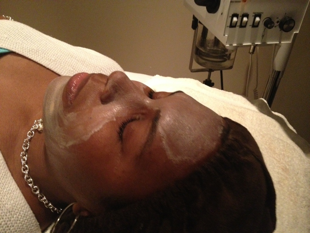 After cleansing and toning, a lemon burst exfoliator was used and then a clay mask applied specifically to my oily areas to help detox the skin.