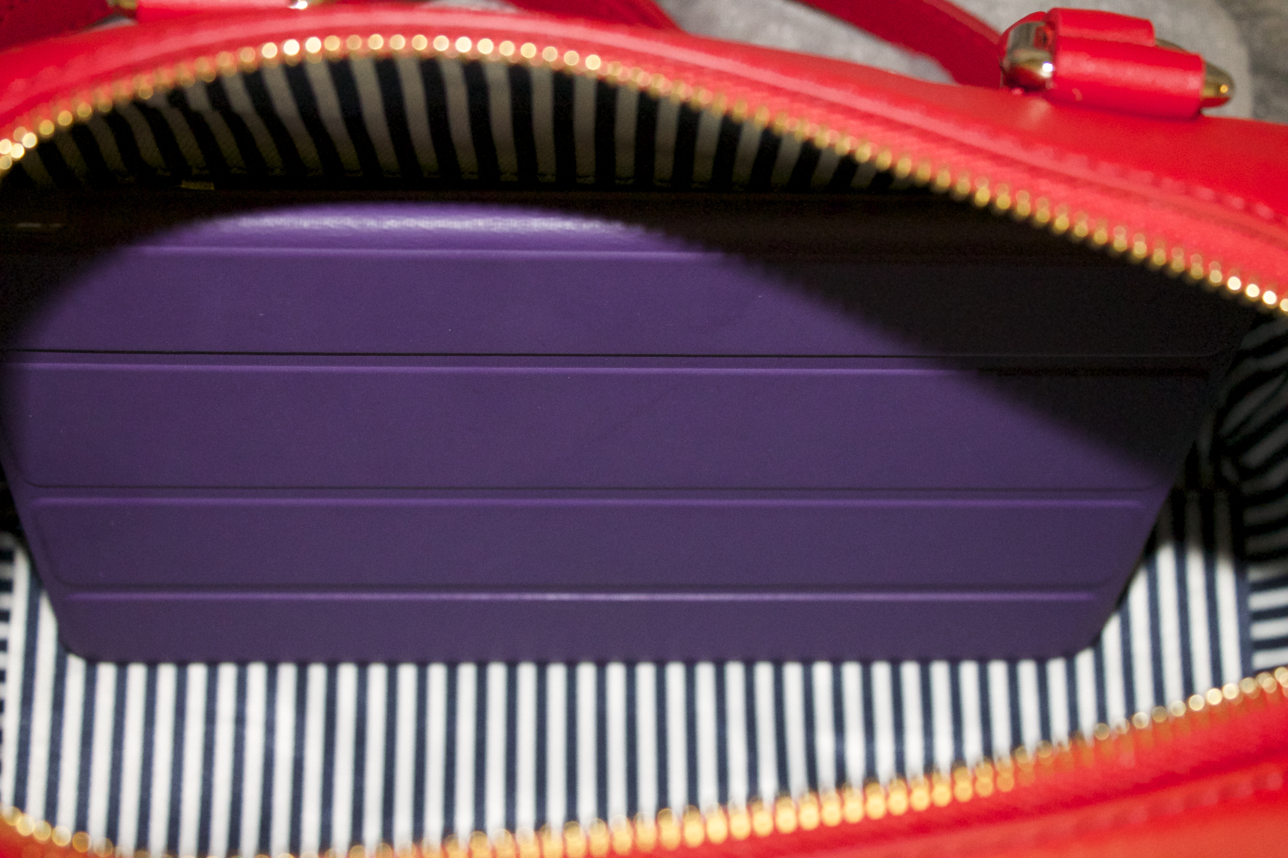 I went in last week to see if they had an iPad mini cover in store that I can see it before I ordered it online. I bought one from them online before and it didn’t work out so I wanted to see this one since it was different. However, I was totally sidetracked by a bag I saw in the display window when I got to the store, and when I asked about it, the iPad case became irrelevant. The bag I saw was too big but I wanted to know if they had something similar but smaller. The options displayed around the store weren’t what I had in mind so then on of the sales ladies said they just got a shipment and she’ll go in the back and check for me. That’s when she brought out Mini Pippa. But in white and cream and black and cream. I didn’t want these colours. I wanted something bright that screamed Summer and had colour that wasn’t neutral. Then she said: “Oh! We have it in red!?” When she pulled the red out of all the paper and plastic it was like the heavens opened up for me! I was told I’m probably the first person to purchase one since they weren’t available online yet and they weren’t out on the floor yet. They should be by this weekend.