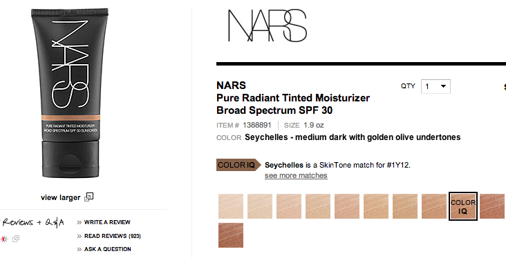 While in store, your matches show up on an iPad. After I was matched, I tried Bobbi Brown Skin Stick Foundation and Nars Pure Radiant Tinted Moisturizer. I was in the market for something lightweight with light, buildable coverage since I’ve been having breakouts that are leaving behind a slight discoloration, that is good for Spring/Summer. I had a sample of Nars Pure Radiant Tinted Moisturizer before but in the shade Martinique. I don’t know why I never purchased it but I really liked it. During this visit, I learned that I was a shade lighter in Seychelles. My Color IQ is 1Y12. Another plus is that once you’ve had your match done and linked it to your account, it shows the shade lighter and darker than your match. This is perfect for choosing a darker shade when you’ve gotten a tan or during the winter when you’ve become a little paler. You can also still see other matches for your Color IQ after online.