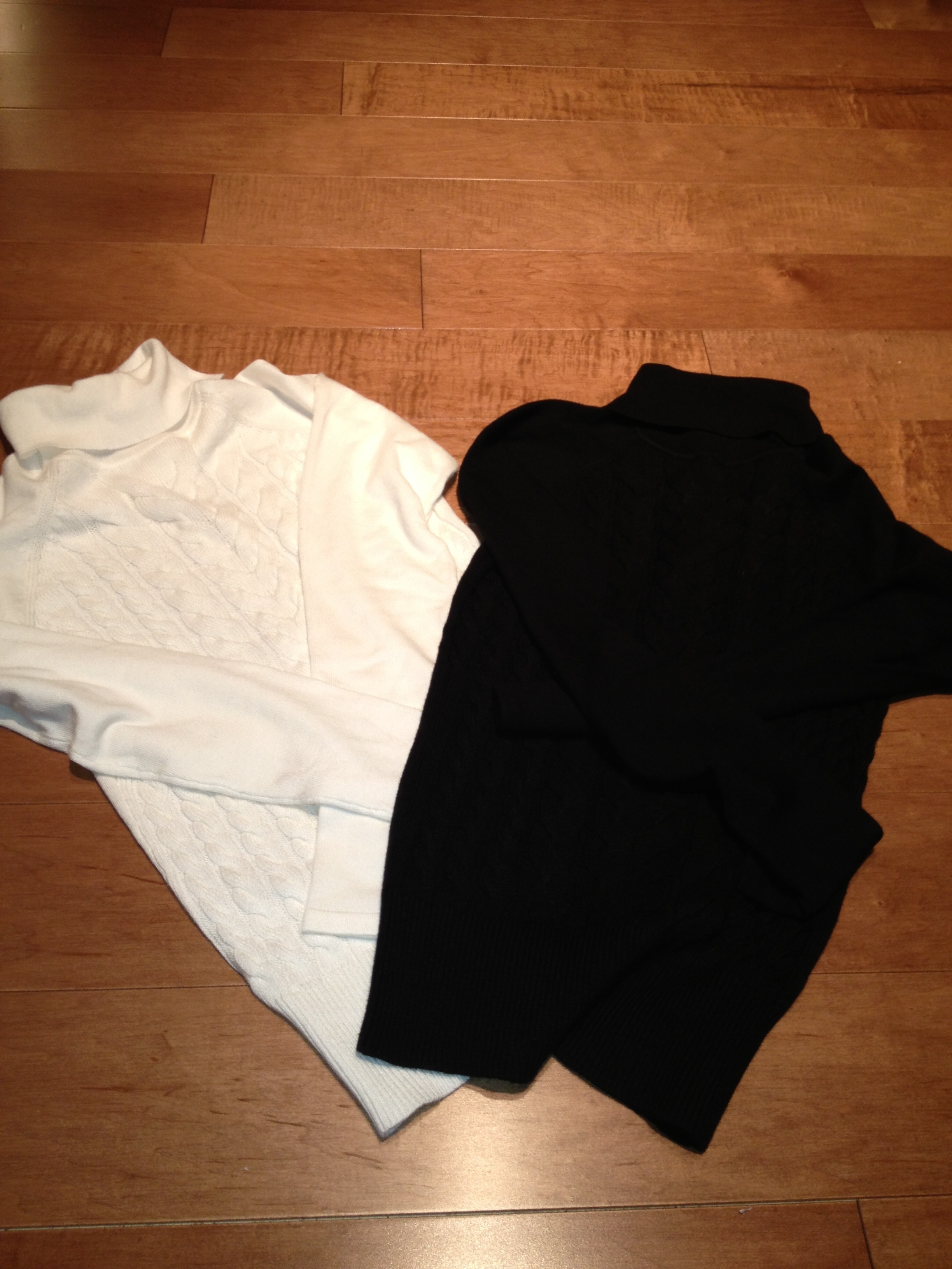 I was recently telling someone how much I dislike turtlenecks. If it doesn’t stick to your neck I’d wear it but the fitted ones I despise. So I had to chuckle when I came across these two ($10.49 each! after an additional 30% off for the closing sale). On Tuesday, I went to a store in another mall to run an errand and I was walking back to the entrance by where I parked and I looked up and saw a store, that I shop in occasionally, was closing that location and had a sale. WHAT!? I had to give it one last look around as I just got my NYE dress from there and everyone loved it. So I tried on at least 8 sweater dresses of which I put all back (womp) and I came out and saw these turtlenecks in 4 different colours. I tried them on and they looked amazing! Very flattering and the neck didn’t bother me at all.