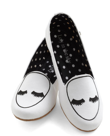 First off, I have one pair of shoes to show you that I ordered. I was hoping to have two but I’m returning the snow boots I ordered because I didn’t like how they fit around my ankle even though they were the cutest ones I’d seen online. Poop. I ordered these flats from Modcloth (LURVE this website) and even though I ordered a half size too big, I have insoles from Aldo that make them practically fit me. Aren’t they adorable?!